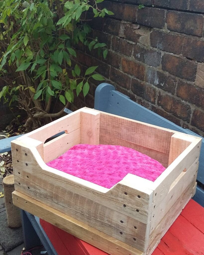 #7: The Rustic Pallet Dog Bed With a Hot Pink Fleece Lining That Somehow Looks Pinterest-Perfect