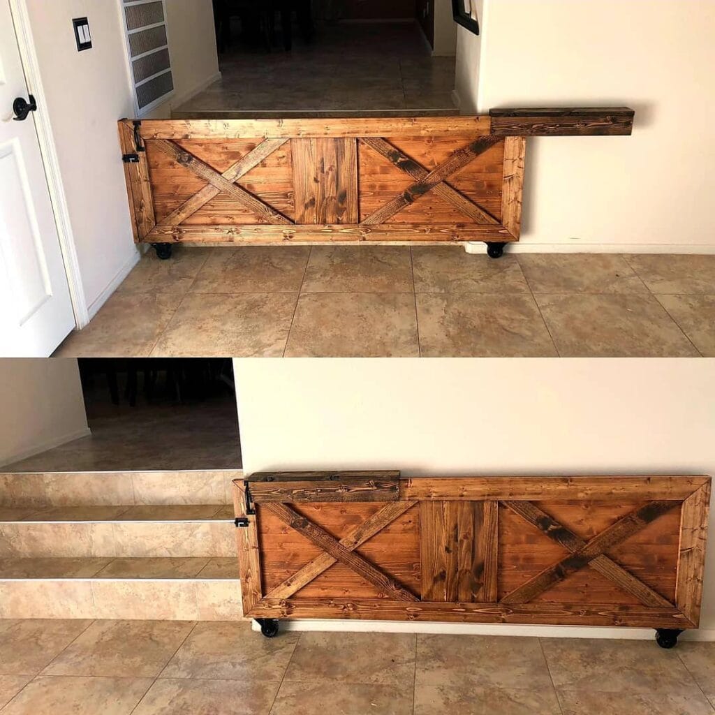 #3: Rolling Barn-Style Dog Gate That Blocks Doorways and Looks Stunning