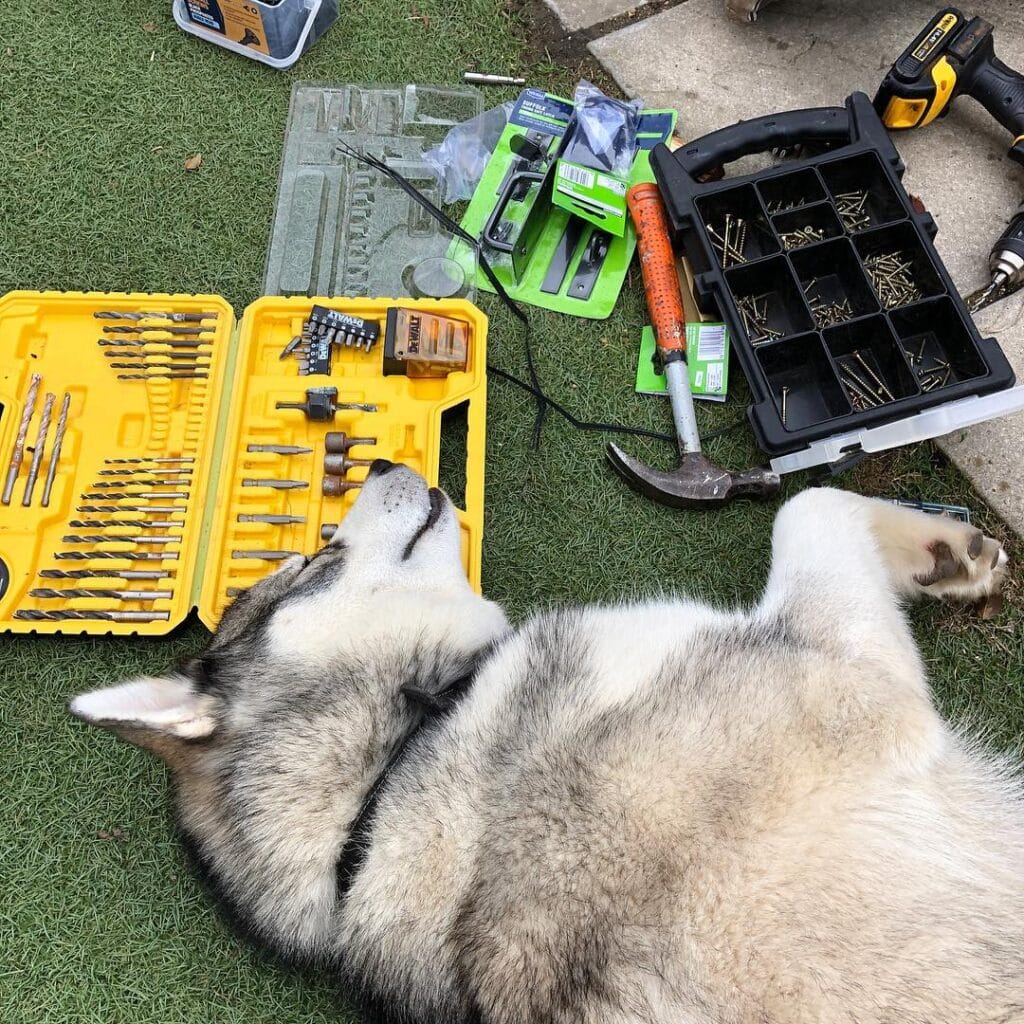#4: The “I Give Up” Drill Bit Organizer That Doubles as a Dog Gate Distraction Station