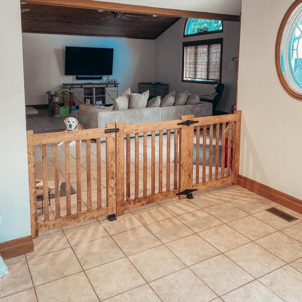Finishing with a clear sealant protects the wood from drool and paw scratches — meaning this gate stays beautiful way longer than a store-bought plastic one.