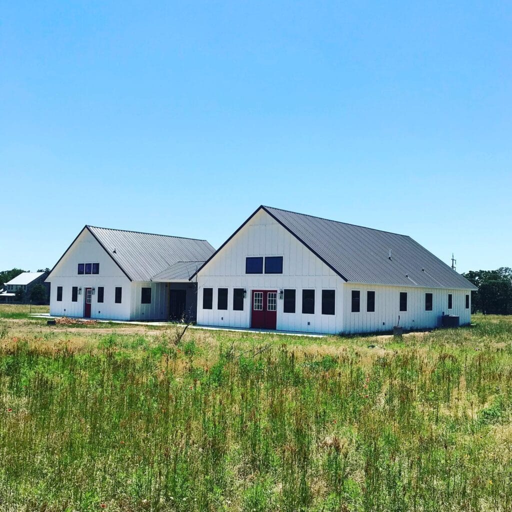 #9: White Board-and-Batten Dog Trot with Metal Roof