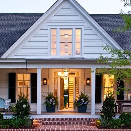 The siding and stone chimney anchor this traditional Southern design. Here’s the genius part: the breezeway IS your mudroom. Put an insulated outdoor dog house