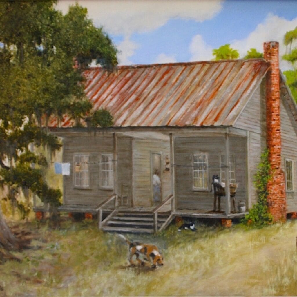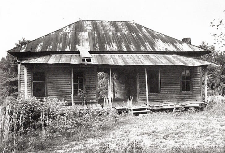 This weathered dog trot shows the original Southern design. Two separate buildings connected by a shaded open breezeway. Cross-ventilation drops temps 15 degrees below direct sun. The rustic metal roof covers the entire path. You can move between wings during rain without getting wet.