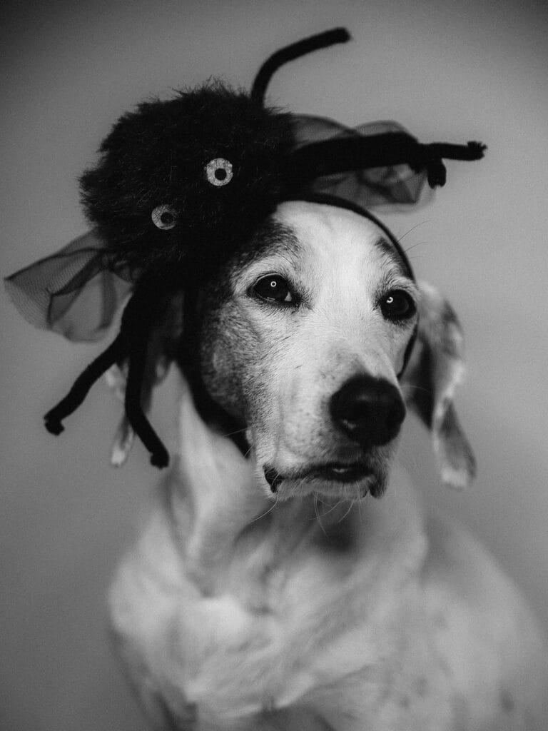 And here’s something most people skip: trim any loose faux fur away from the googly eyes so your dog’s photos actually pop in low light. The contrast between the fluffy spider and your dog’s light coat does all the heavy lifting — zero extra props needed.