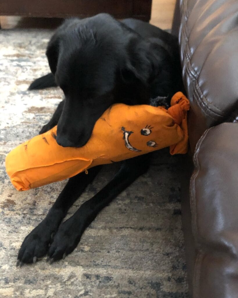 #8: DIY Stuffed Carrot Dog Toy (No-Sew Option!)