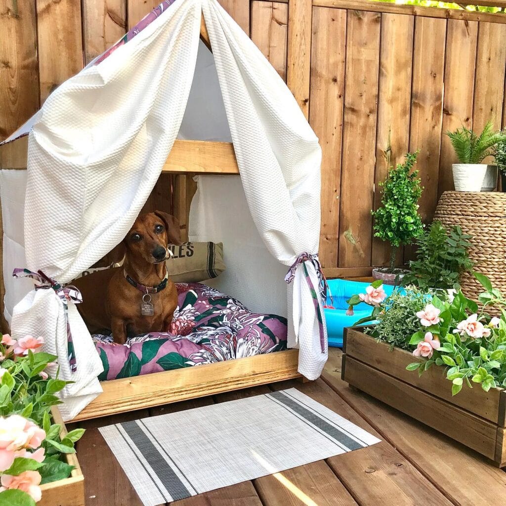 #11: DIY Canopy Dog Bed with Floral Bedding