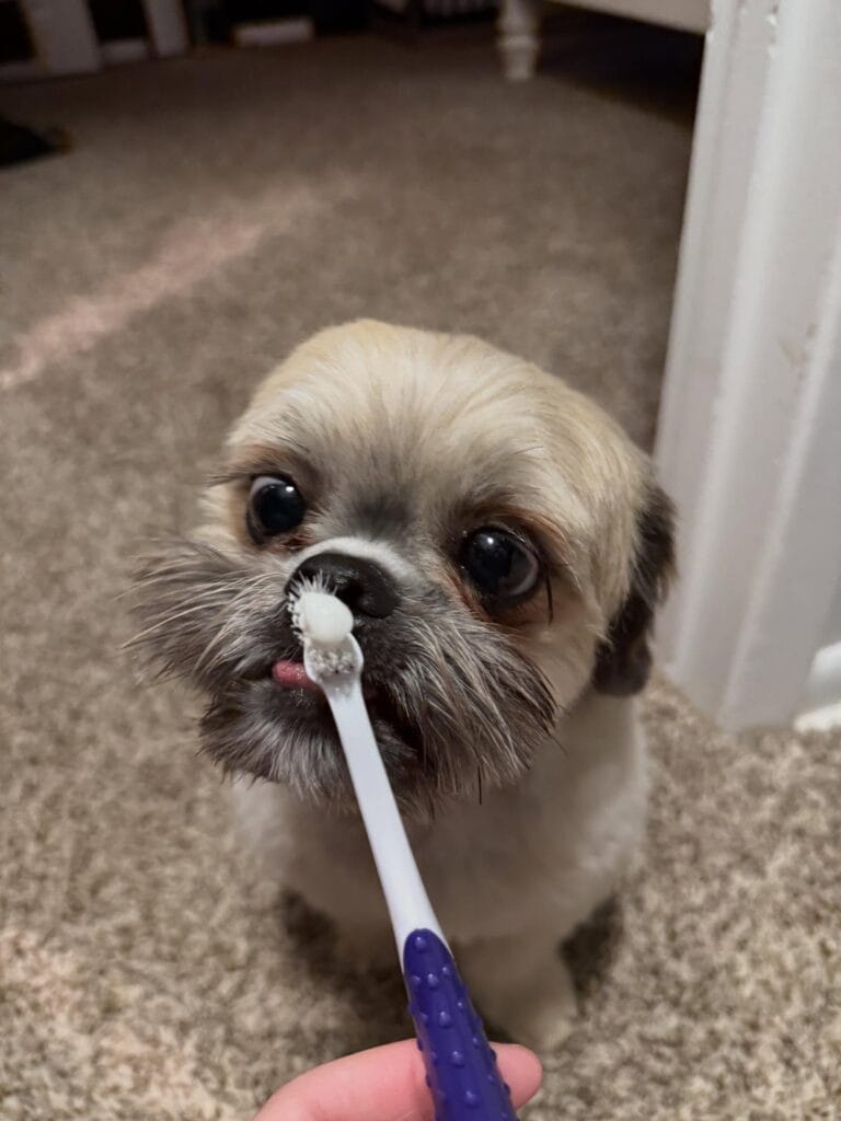 Too much baking soda makes it gritty and harsh. Your pup tastes that immediately and clamps their mouth shut. I learned this the hard way with my cousin’s golden, Maple, who would legit back into corners the second she saw the toothbrush coming.