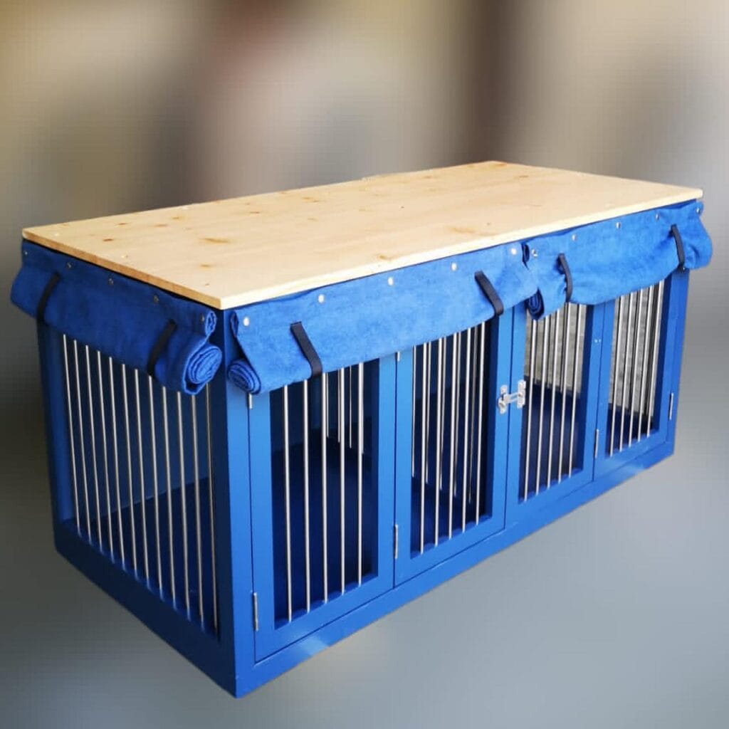 #2: Double Dog Crate with Wooden Top and Blue Steel Frame