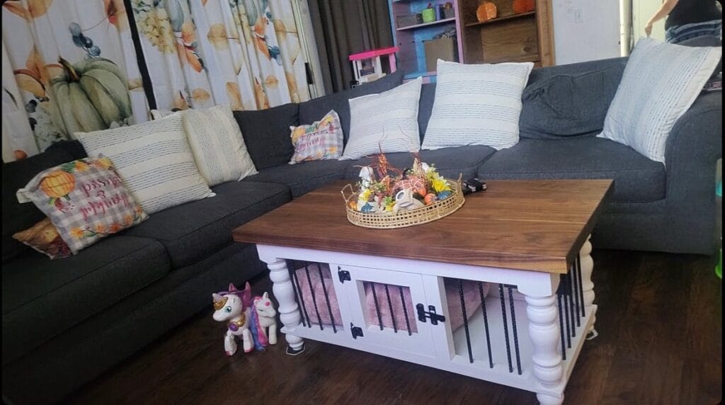 #13: Farmhouse Coffee Table Dog Crate With Hidden Storage