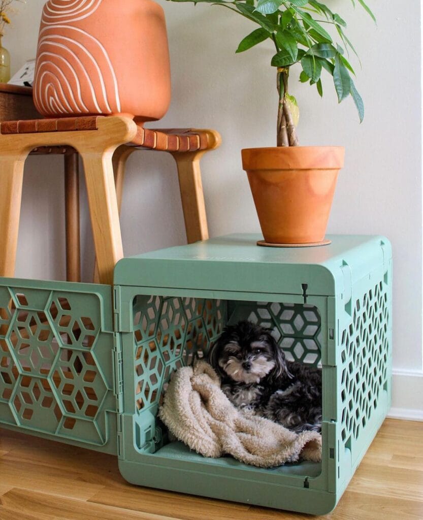 Your golden is finally napping — but that chunky plastic crate is still sitting there, clashing with every throw pillow you own.