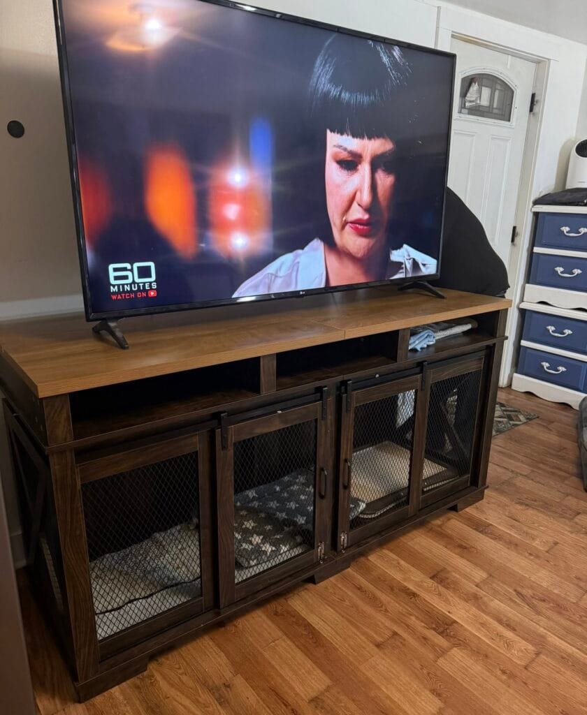 #6: TV Stand Dog Crate Combo With Mesh Cabinet Doors