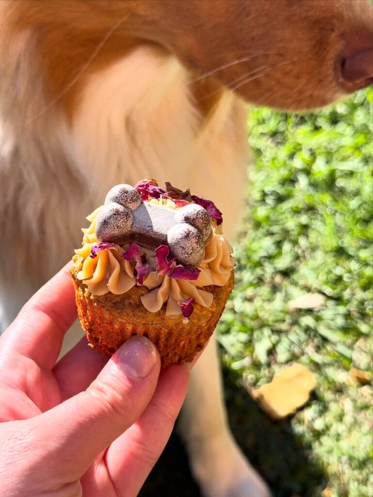 Whole wheat flour gives these structure without upsetting your pup’s stomach — sturdy cupcakes mean your golden can hold one between their paws and go absolutely feral for it.