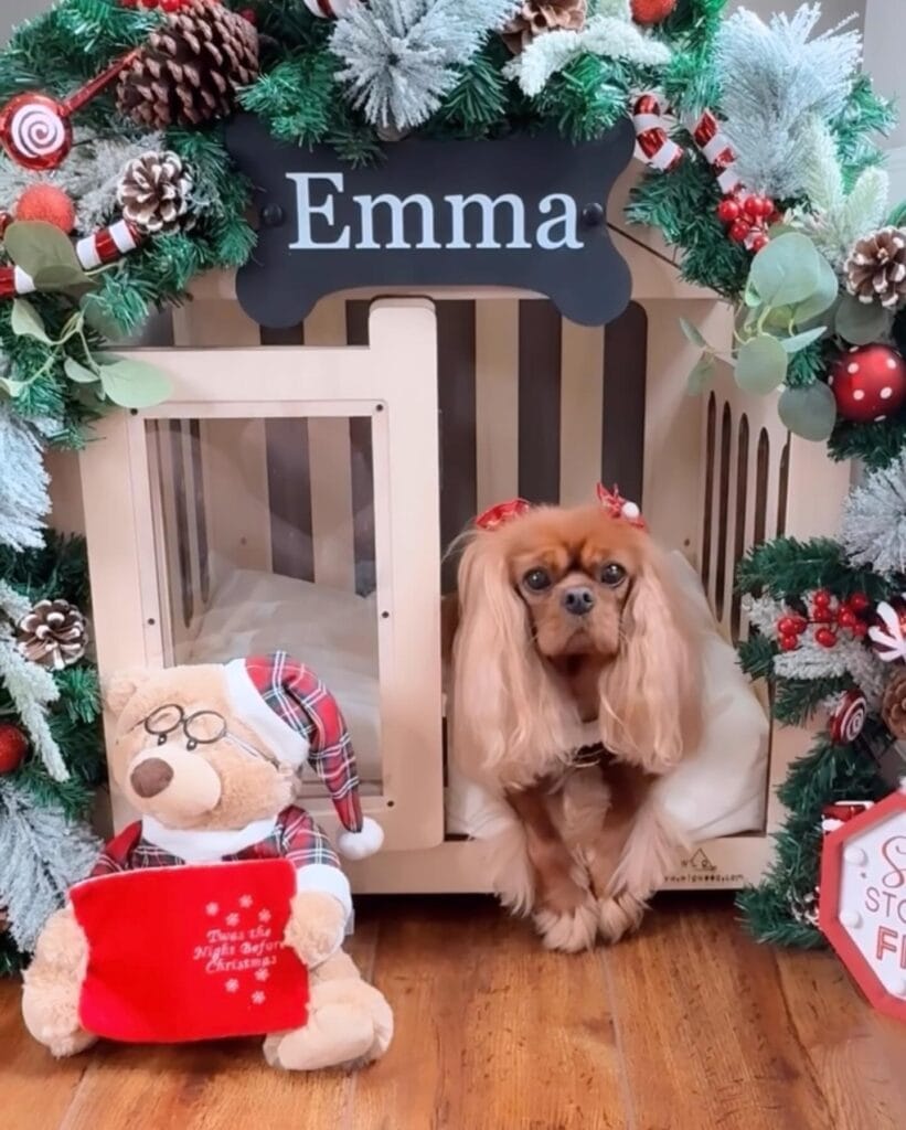 Your guests walked past Amadeus’s crate eight times before someone finally noticed the fluffy white dog inside. That’s because this wooden dog house crate looks exactly like a charming play structure or decorative furniture piece—not a kennel.