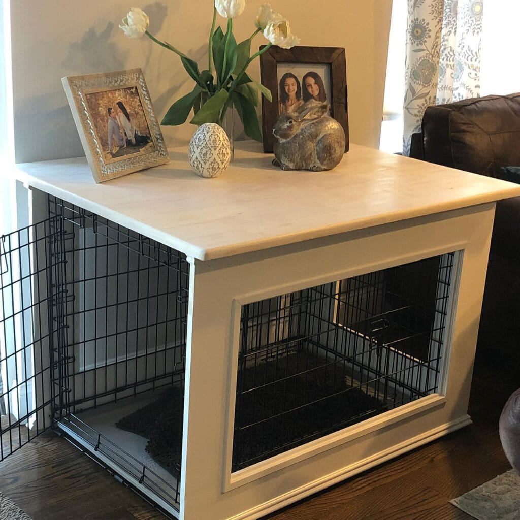 #10: Farmhouse Dog Crate End Table (Wooden Top Meets Wire Cage, Doubles Your Furniture)