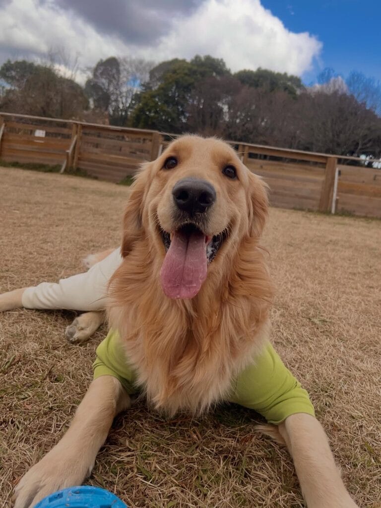 Your golden is finally tired — sprawled out in the sun, tongue out, completely in their element. That’s the energy this setup gives.