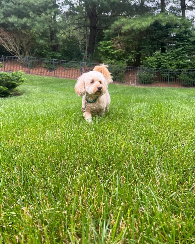Your golden is zooming through the backyard, ears flopping, paws barely touching the ground — and this is exactly the vibe you want to bottle up forever. A lush, well-kept grass run with a sturdy perimeter fence gives your dog that full sprint freedom without you white-knuckling it every time she bolts toward the street.
