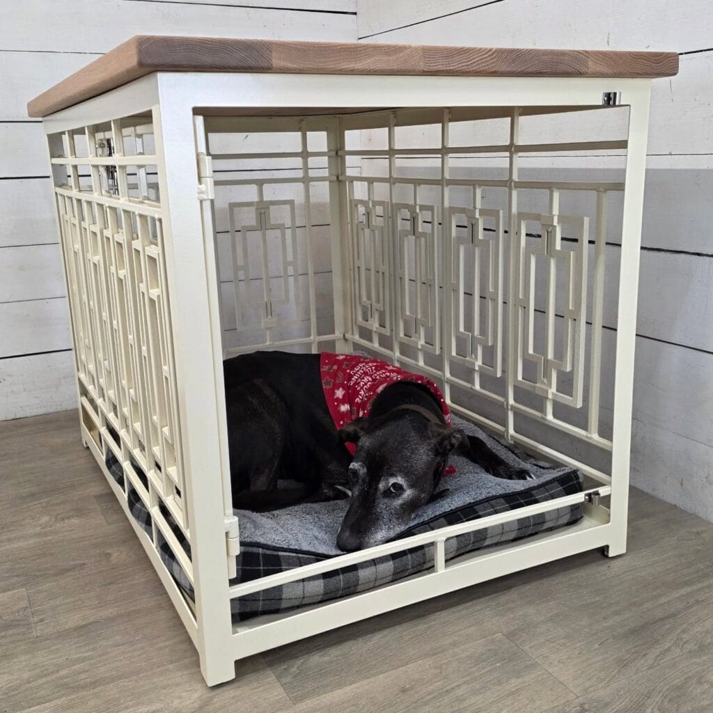 Your golden retriever has a crate that looks like it was thrown in the corner and forgotten — wire showing, plastic tray rattling every time she shifts around. Meanwhile, your living room is finally coming together and that crate is ruining the whole vibe.