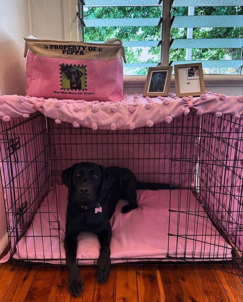 #16: The “Property of Peppa” Pink Crate Setup That Makes Dog Moms Everywhere Cry Happy Tears
