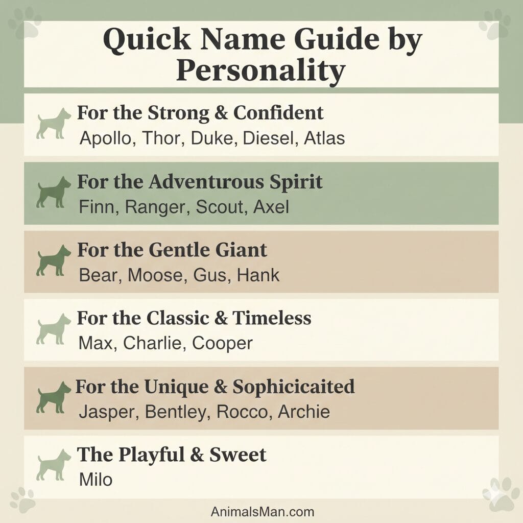 Overwhelmed by options? This quick guide helps you narrow down your favorites based on your pup’s personality—because the right name should match his energy from day one.