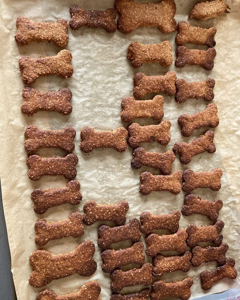 #12: Bone-Shaped Peanut Butter & Oat Dog Treats Baked on Parchment