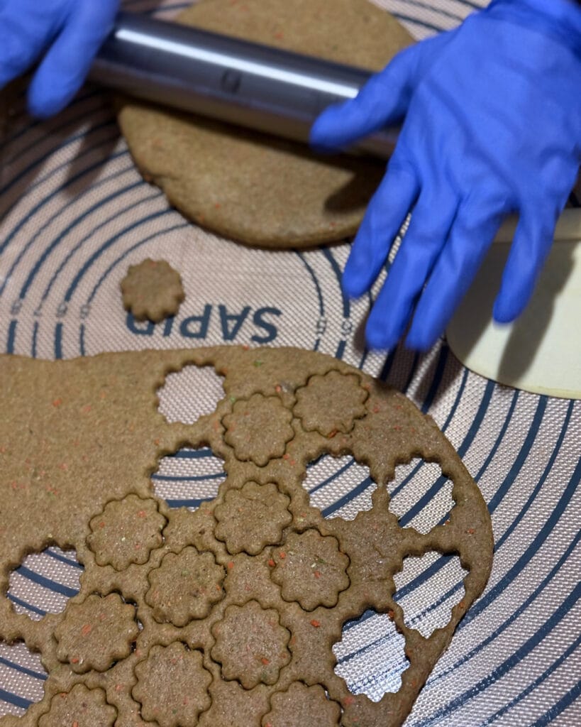Roll it out to about ¼ inch thick on a silicone mat (seriously, the dough lifts so much cleaner). Press your flower cutter straight down without twisting. That’s what keeps those pretty edges sharp.