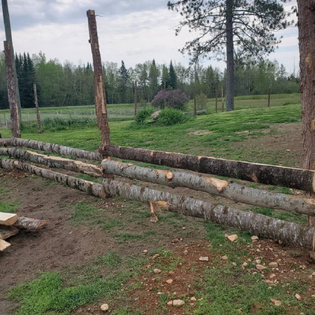 Grab 3-4 horizontal log rails per fence section — each roughly 8-10 feet long. The bark-on texture keeps it looking intentional, not sloppy.