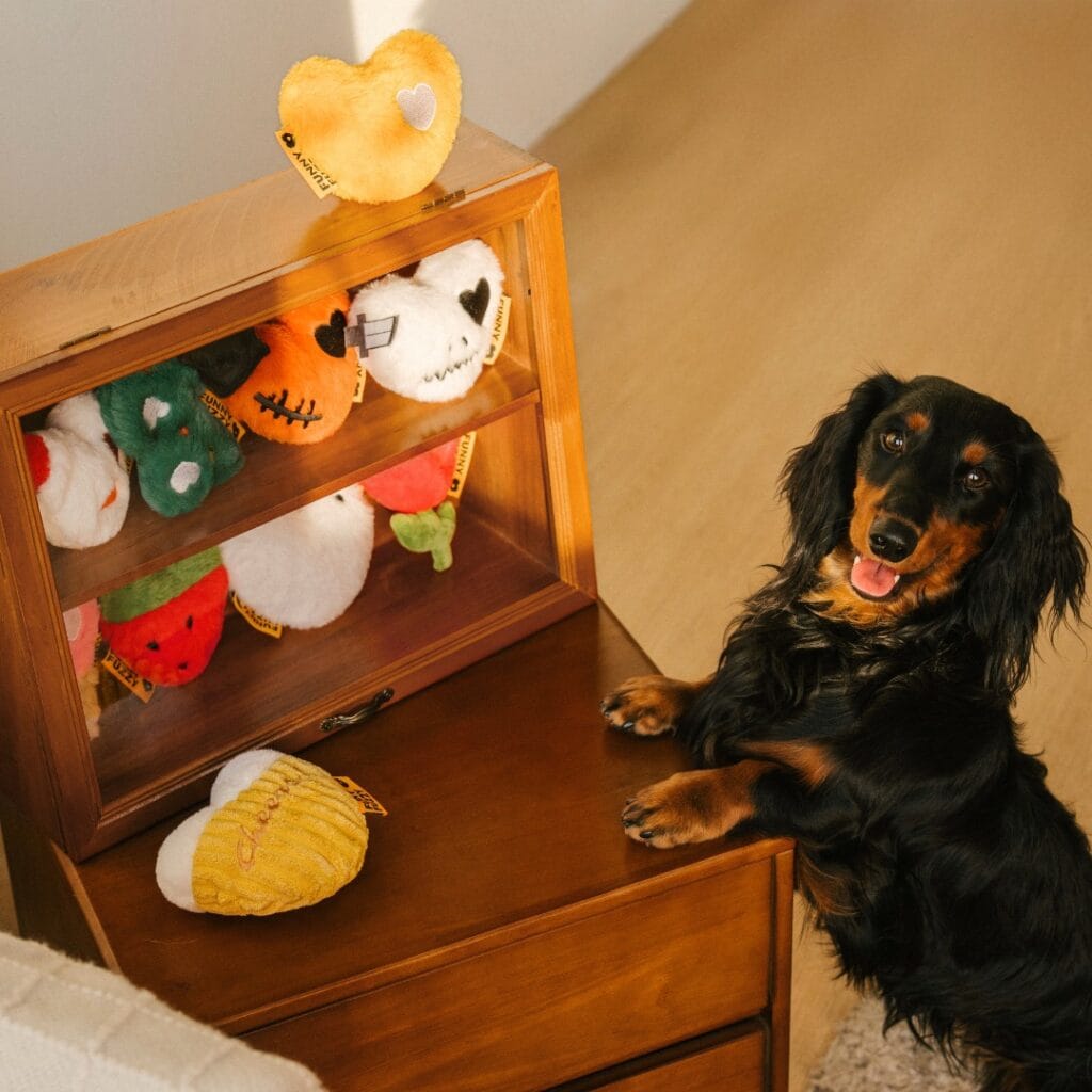 Rotate the toys every couple of weeks. Dogs get bored with the same ones, and swapping them in and out keeps the display fresh and keeps your girl excited about her collection again.