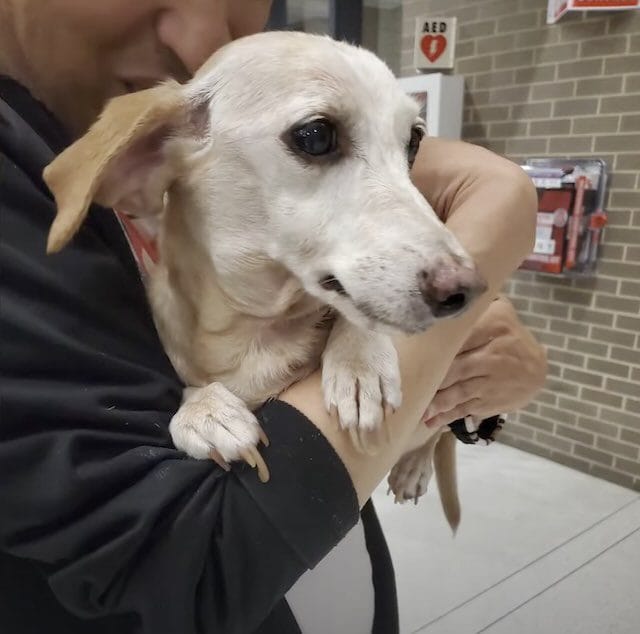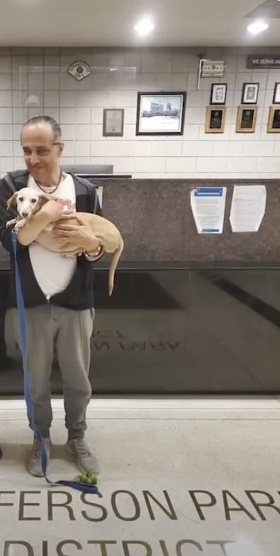 When Santiago got there, he didn’t just take someone’s word for it. He carefully checked Bam Bam’s ears and face himself — the way only someone who truly knows and loves their dog can. And yes, it was him. It was really him. Santiago was completely overwhelmed.