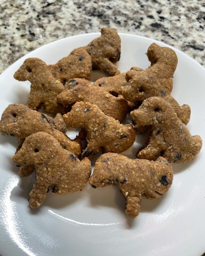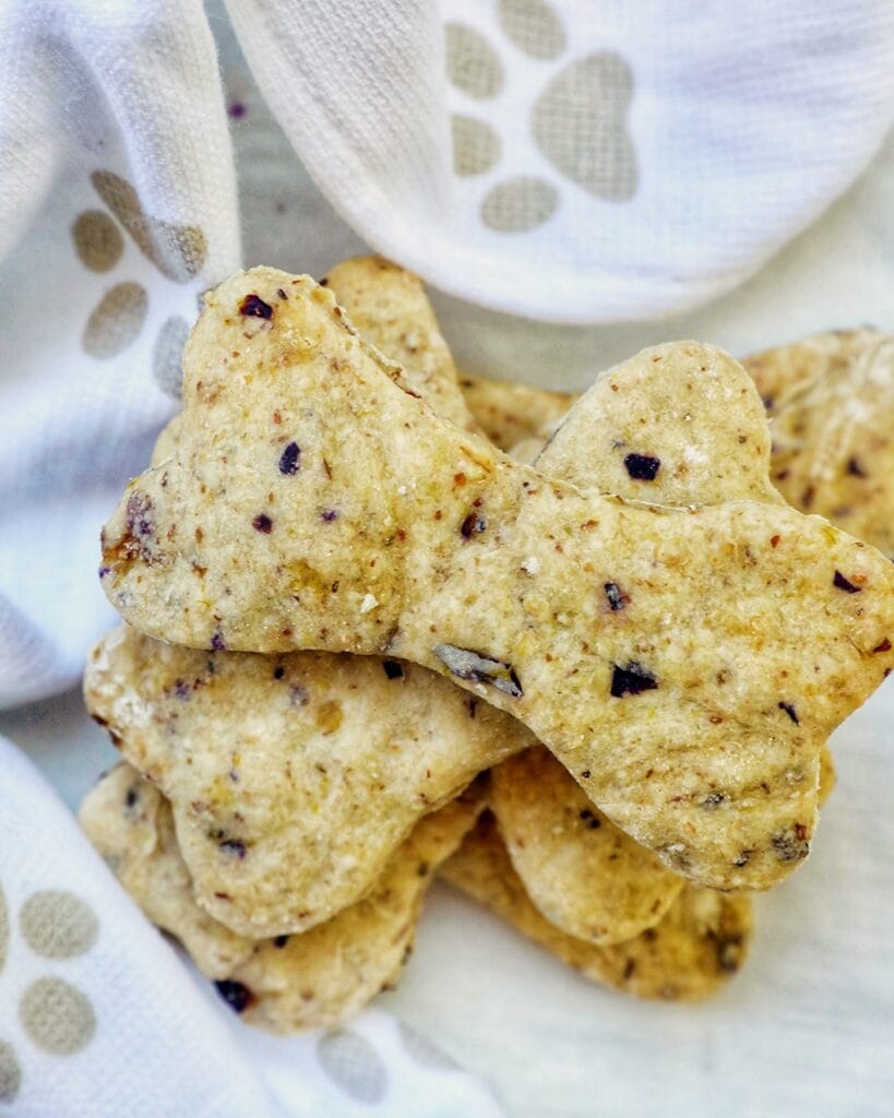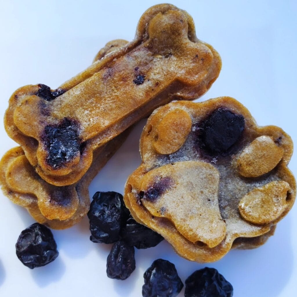 These bone-shaped biscuits are baked golden with real blueberries scattered through a whole wheat and oat flour base. They stack beautifully in a jar on your counter and look straight off a Pinterest board.
