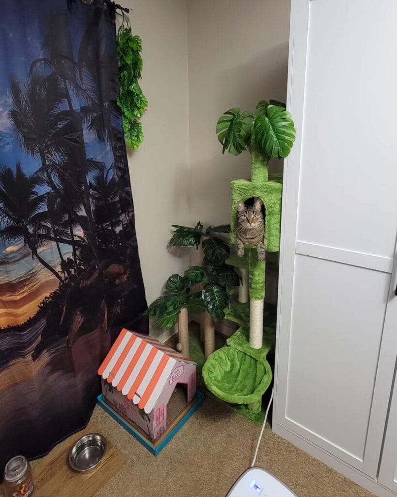 #16: Tropical Jungle Cat Corner (That Feels Like a Mini Vacation Spot)