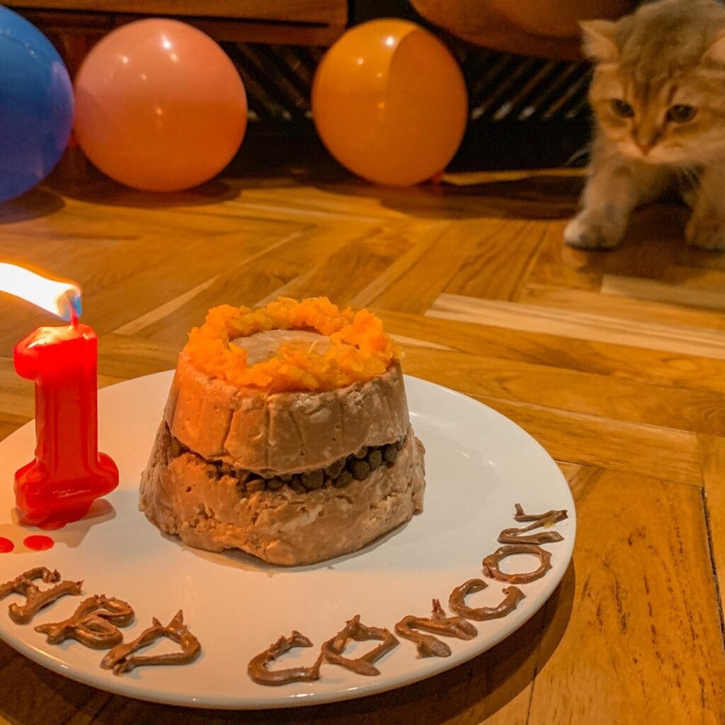Okay, so you know how you go all-out for your golden’s birthday with the little bandana and the puppuccino from Starbucks? This is that energy — but make it cat.
