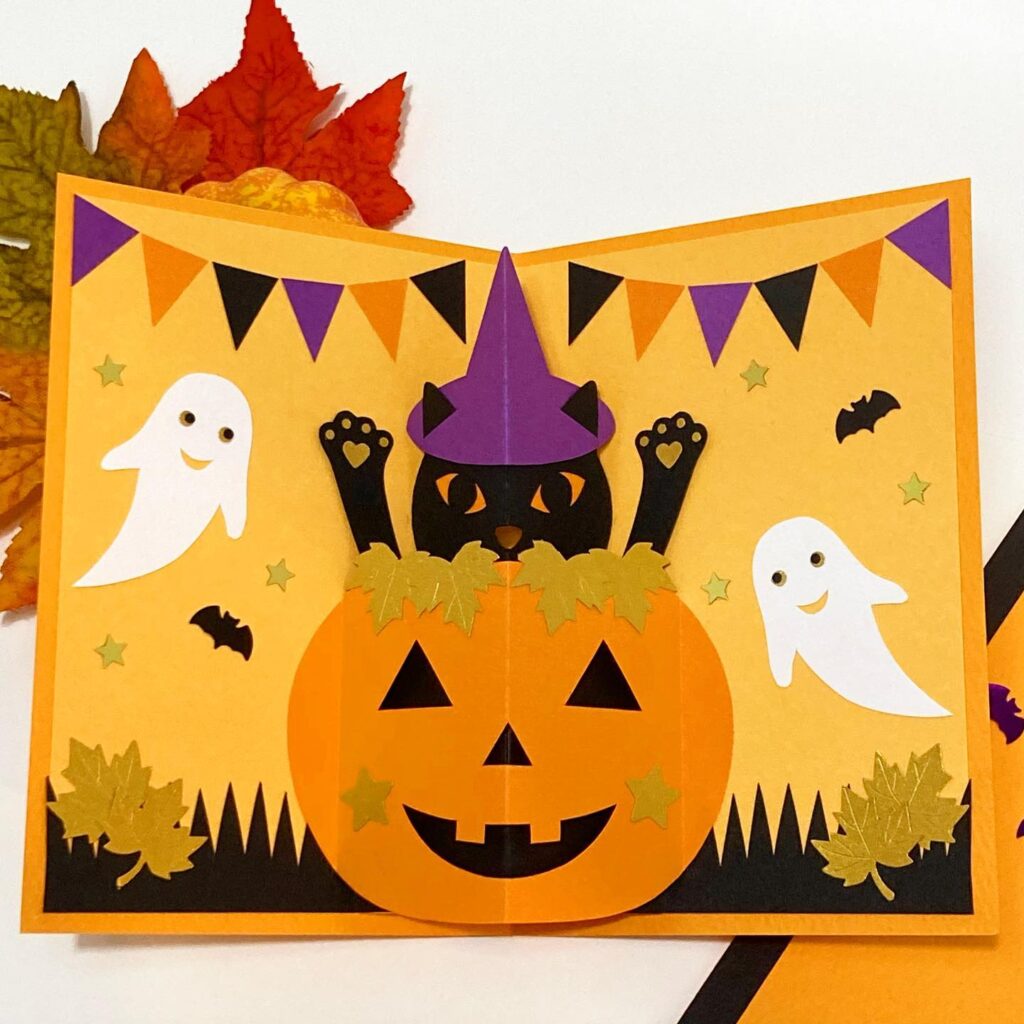 #6: Halloween Pop-Up Cat Birthday Card with Jack-o’-Lantern Scene