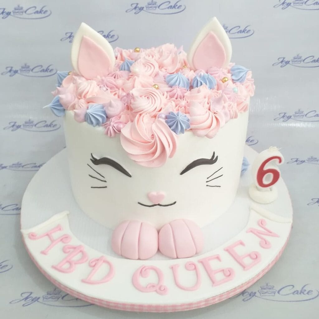 #7: Marie From The Aristocats Cat Cake Topper With Fondant Ears And Buttercream Blooms
