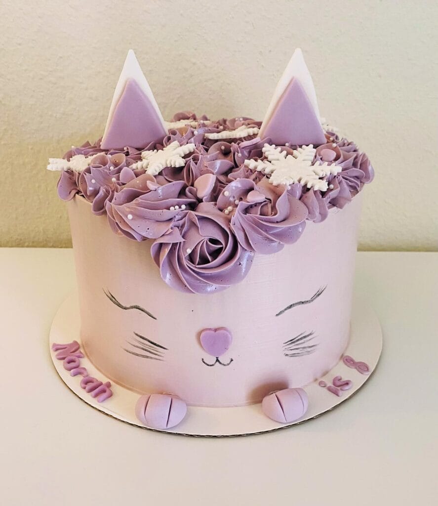 #19: Lavender Dream Cat Cake Topper with Buttercream Roses and Fondant Ears
