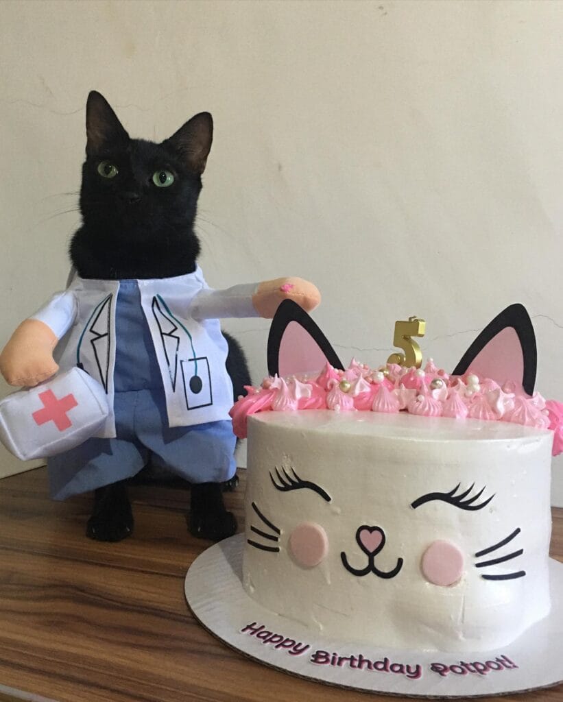 #16: This Black Cat Dressed as a Doctor Posing With His Own Birthday Cake Is the Most Extra Thing You’ll Ever See (And You Need It)