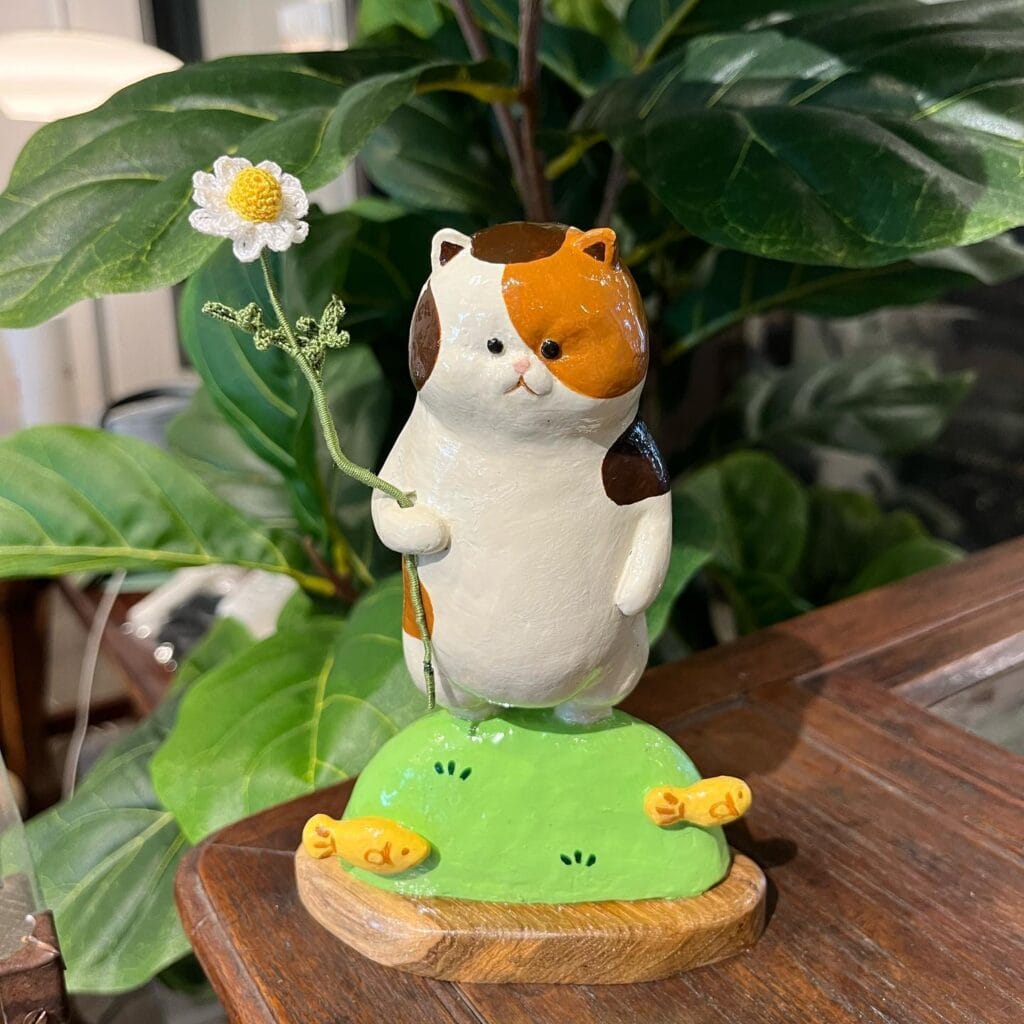 #4: DIY Calico Cat Figurine With Daisy and Goldfish Base