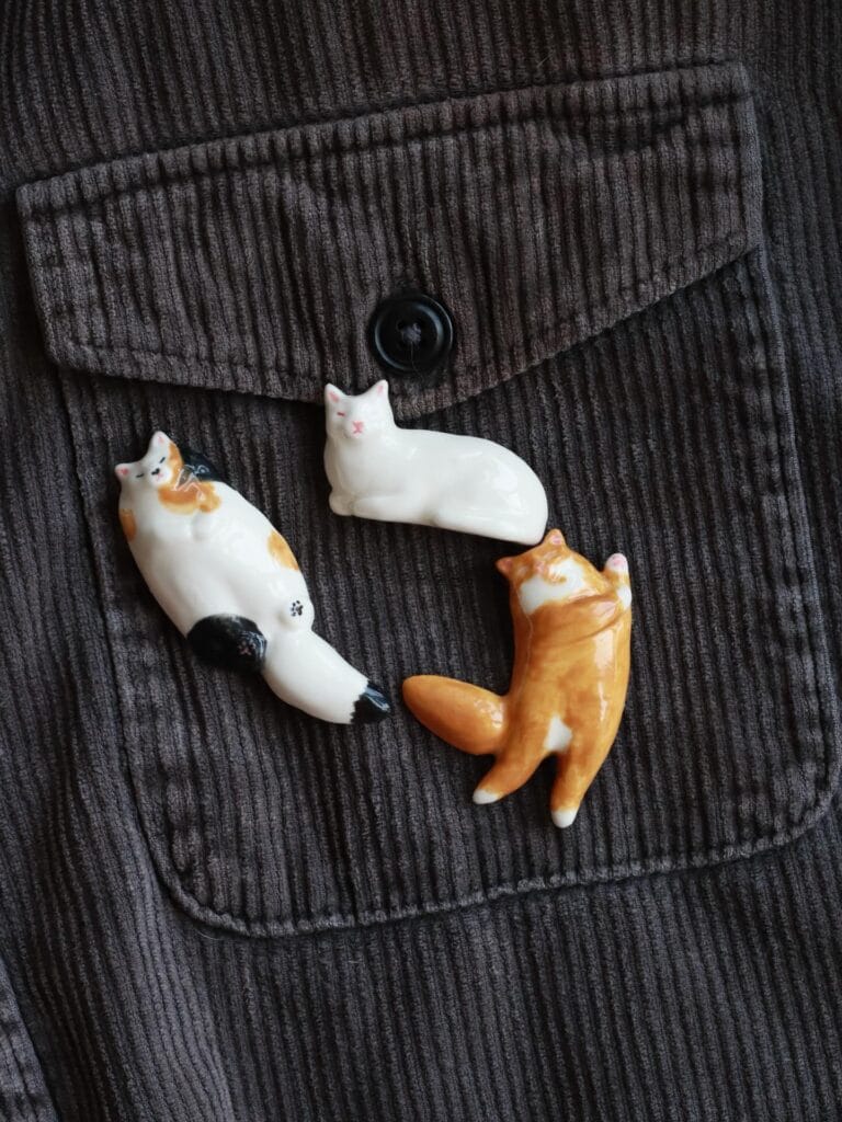 #6: DIY Ceramic-Style Cat Brooch Pins (And They Look Exactly Like Real Cats)
