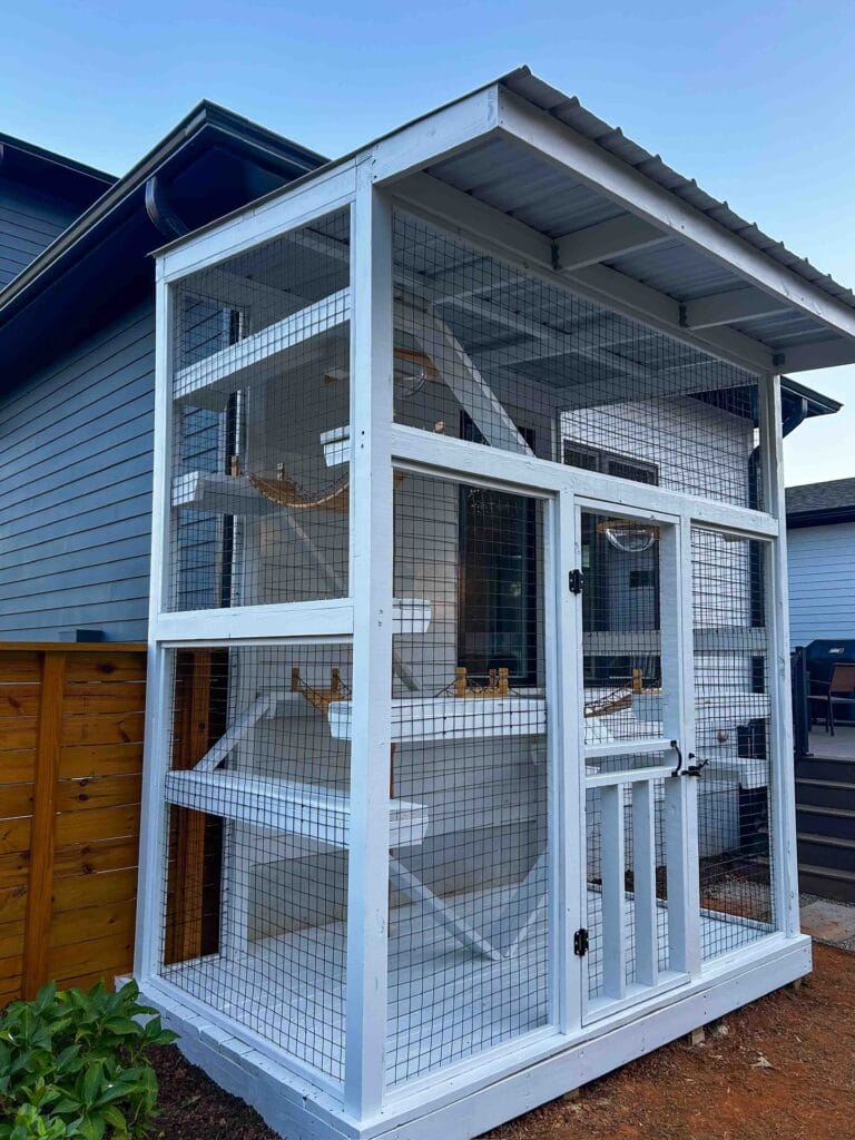 One thing to remember: anchor your frame to an exterior wall with two or three L-brackets. Wind gets under these enclosures faster than you’d expect, and the last thing you want is the whole structure shifting while your cat’s inside.