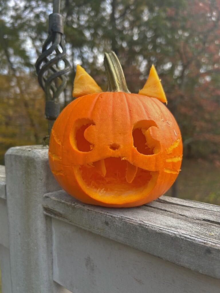 #1: Cat Face Pumpkin Carving With Ears — The Cutest Halloween Collab You Didn’t Know You Needed