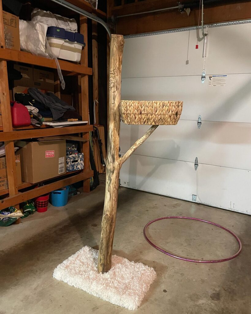 Pick a log with a natural fork already formed — hunting at lumber yards or fallen-tree spots saves you serious cutting work. Also, wedge a small rubber furniture pad under the base corner if the floor is uneven. Stability matters more than you’d think once a cat starts jumping.