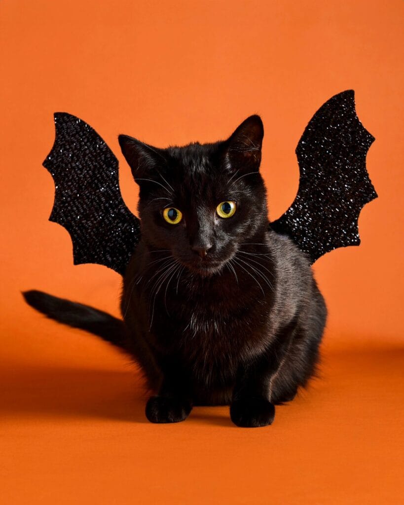 #15: The “Bat-Cat” Halloween Costume — Black Glitter Bat Wings for Cats