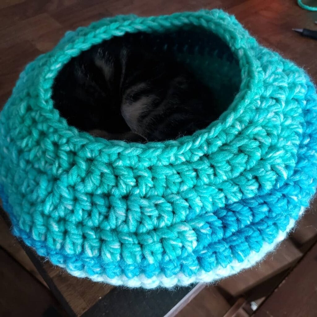#2: The Teal Crochet Cat Nest That Looks Like It Belongs in a Pinterest Board