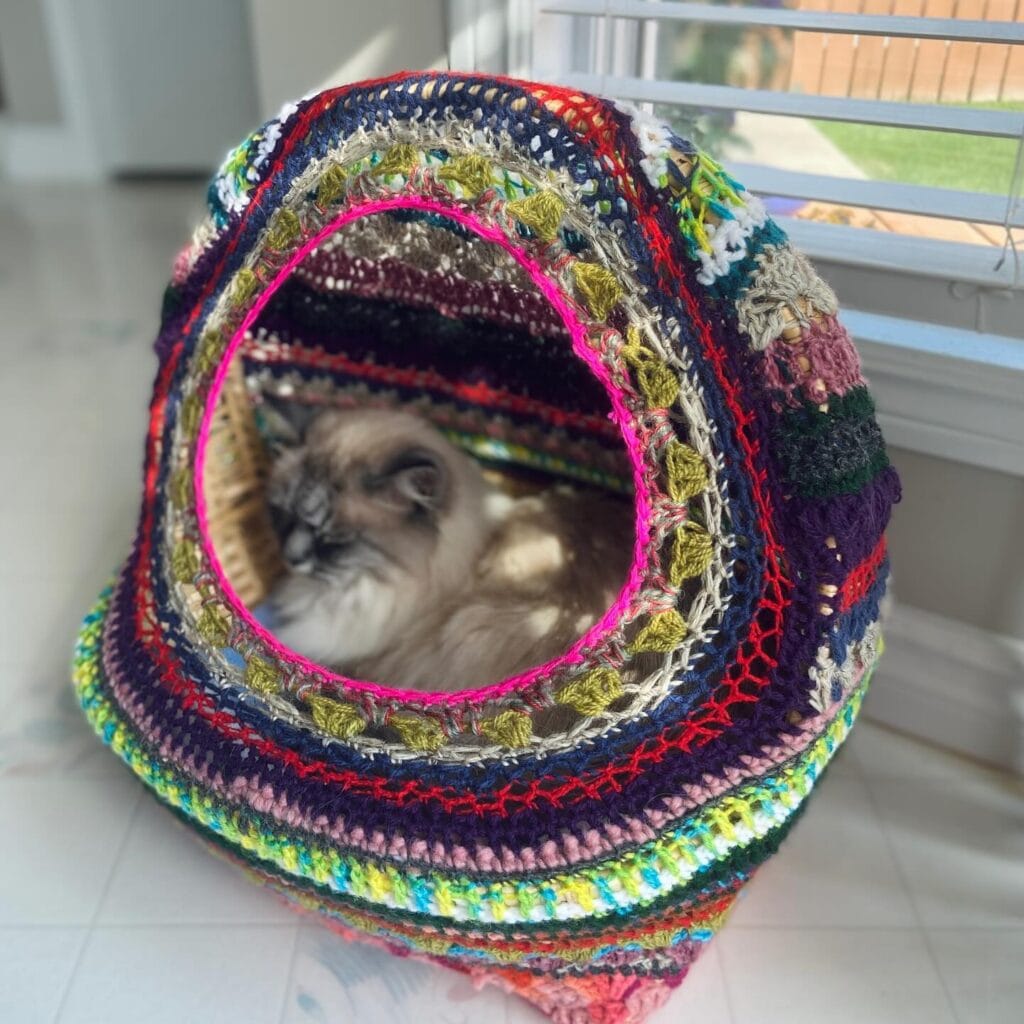 #8: The Scrap Yarn Cat Cave That Looks Like a Work of Art