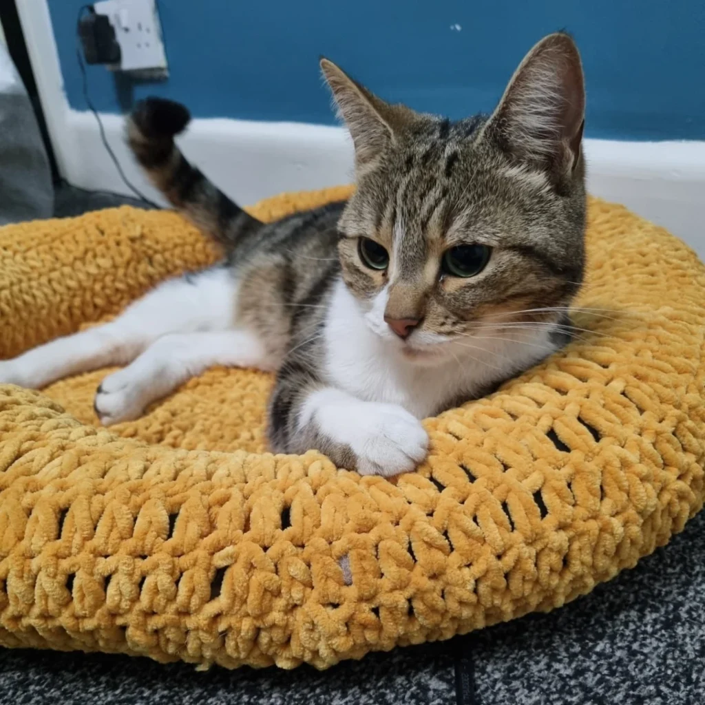 #13: Mustard Yellow Crochet Cat Bed (The One That Actually Stays Put)