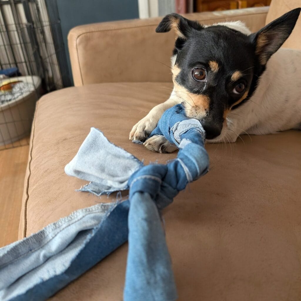 #6: No-Sew Rope Tug Toy from Old T-Shirts (Costs $0, Takes 15 Minutes)