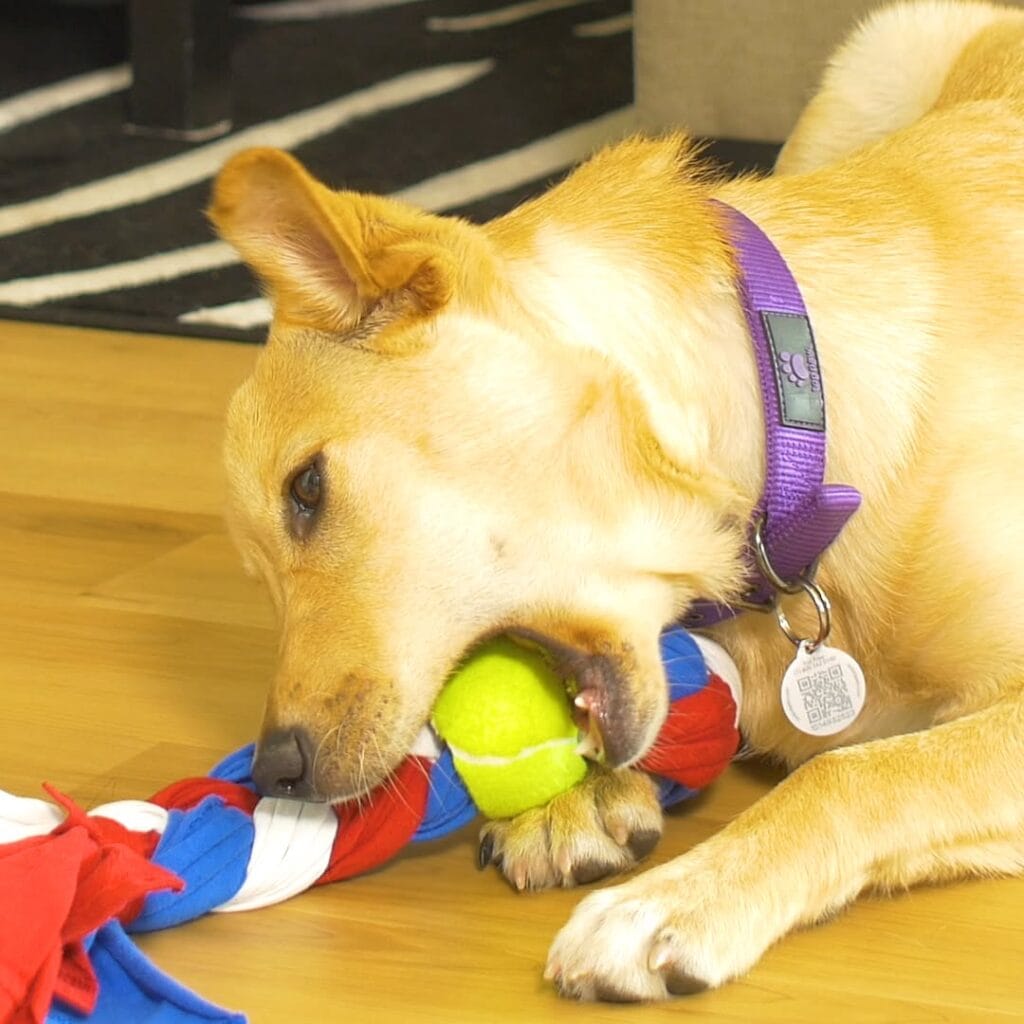 #3: DIY Rope Tug Toy with Tennis Ball (Indestructible Play, Zero Sewing)