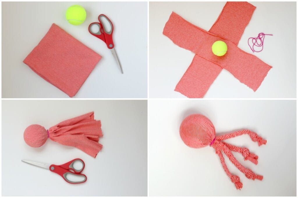 #5: No-Sew Octopus Tug Toy (Tennis Ball Head, Fabric Tentacles That Last)