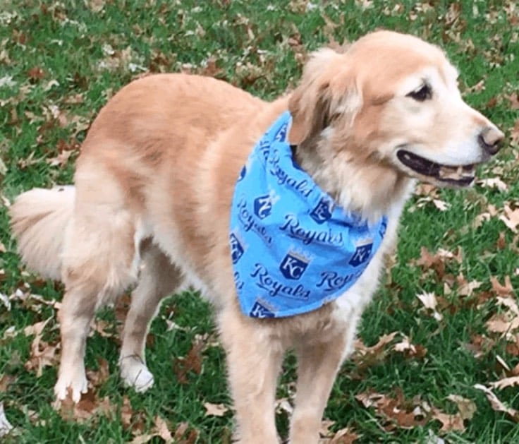 The Royals blue pops against golden fur in photos, which means your dog coordinates with your game day outfit instead of clashing with your carefully chosen throw pillows. No tying, no snapping, no adjusting—just thread and go. This style works brilliantly if you rotate between grooming sessions, since the same bandana fits regardless of coat length.