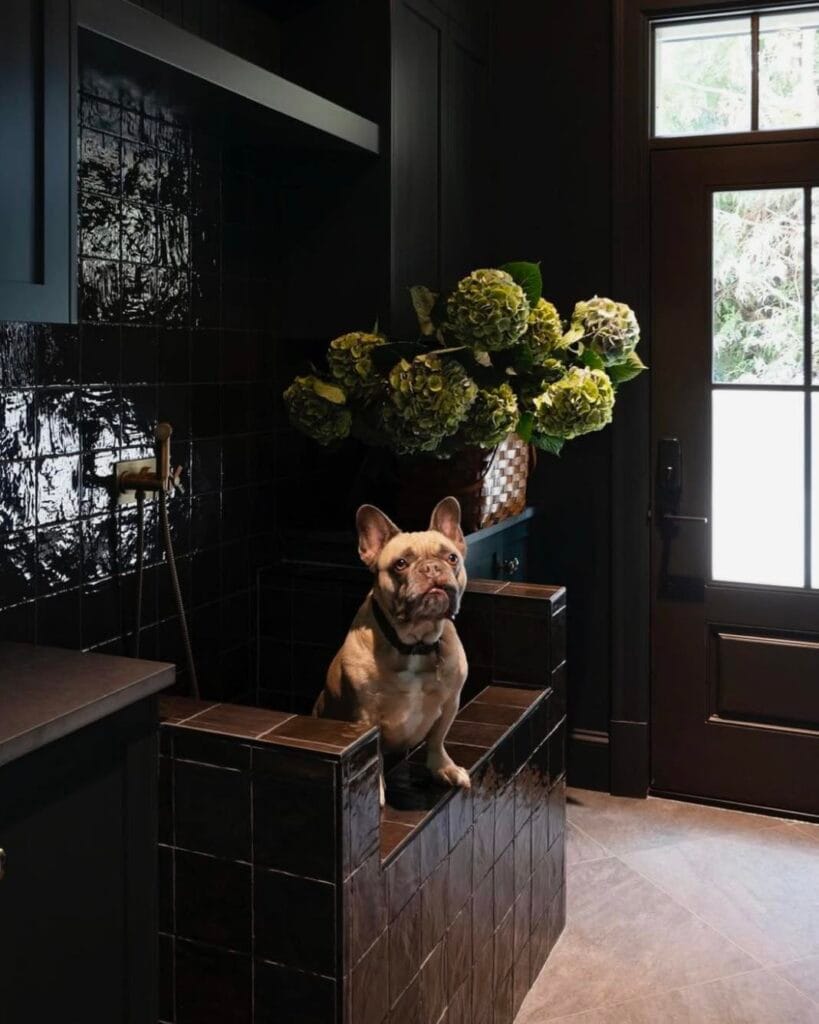 This built-in dog wash station from @thedesignory stopped me mid-scroll. It’s dramatic, it’s moody, and it works.