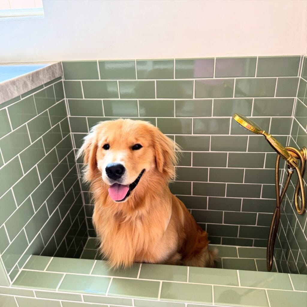 Your golden just sprinted through the backyard and came back looking like a swamp creature. You’ve got mud on the bathroom mat, paw prints on the toilet, and you’re basically wrestling a soaked, 60-pound dog in your tub while your back screams at you.
